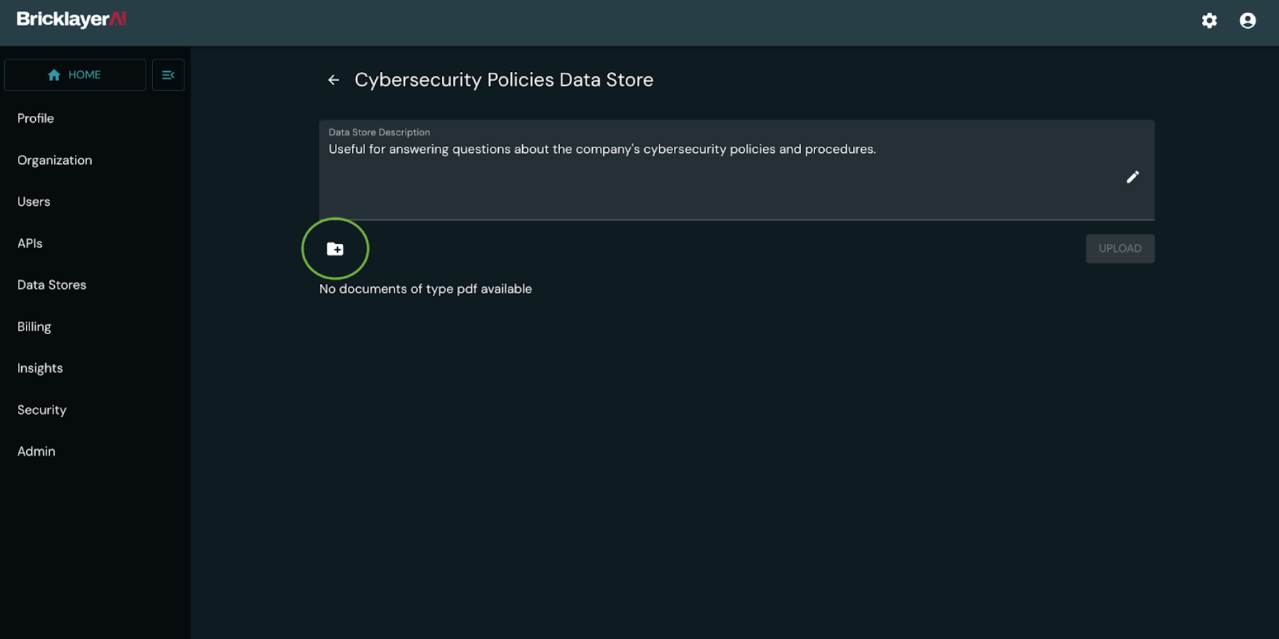 1 – Click on Add Documents: Begin uploading the relevant PDF documents to your data store by navigating to the datastore and clicking on the add documents icon.
