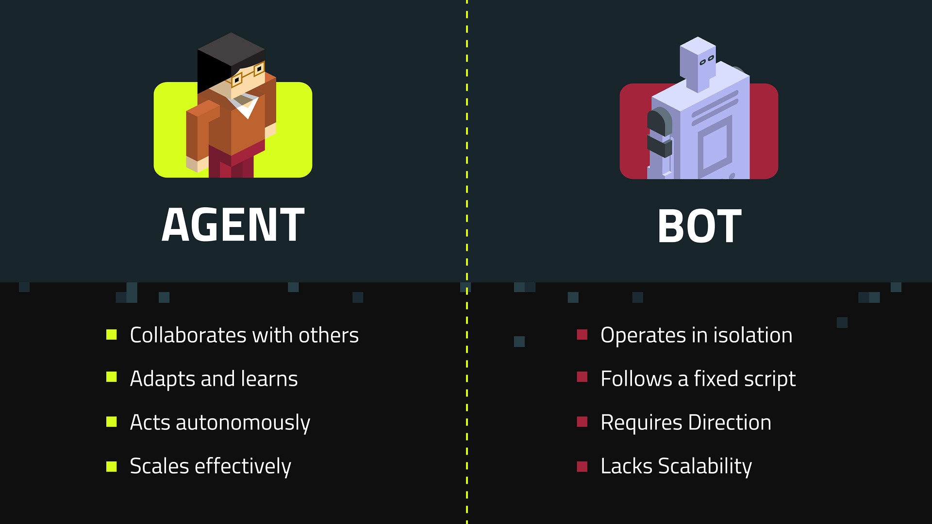 Right now, “agent” is being used loosely to describe everything from LLM-based chat tools to scripted automations. In many cases, these are wrappers around foundation models, or static bots tuned to execute a narrow function. They may assist an analyst or automate a task, but they don’t collaborate, adapt, or scale beyond their single job. They operate in silos—lacking memory, shared context, and extensibility.