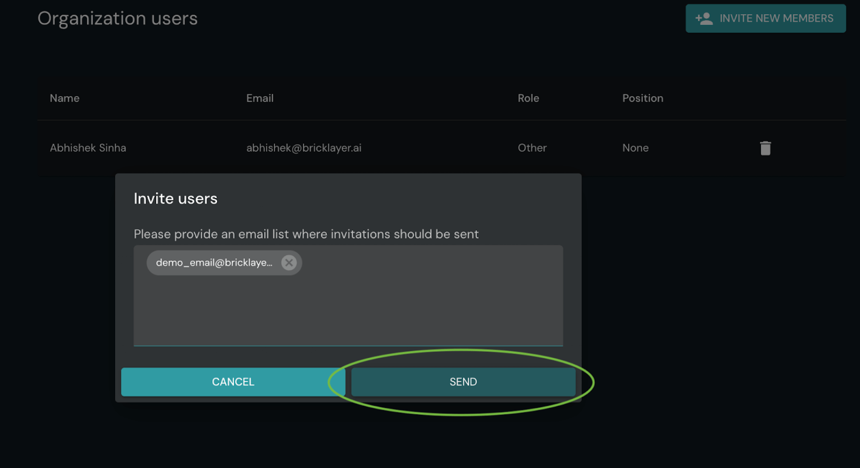 3 – Invite Members: On the Users page, you can invite multiple users from your organization. Simply enter their email addresses in the provided field. Each user will receive an email invitation containing a unique sign-up link.