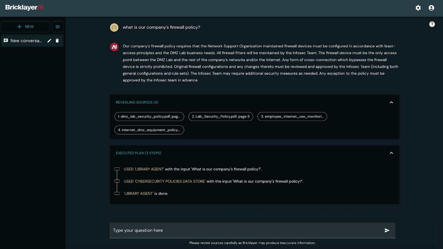 2 – Receiving Answers: The Brickleyer platform will process your questions and provide you with answers based on the data within your organization data store. This allows you to quickly access the information you need without manually sifting through multiple documents.