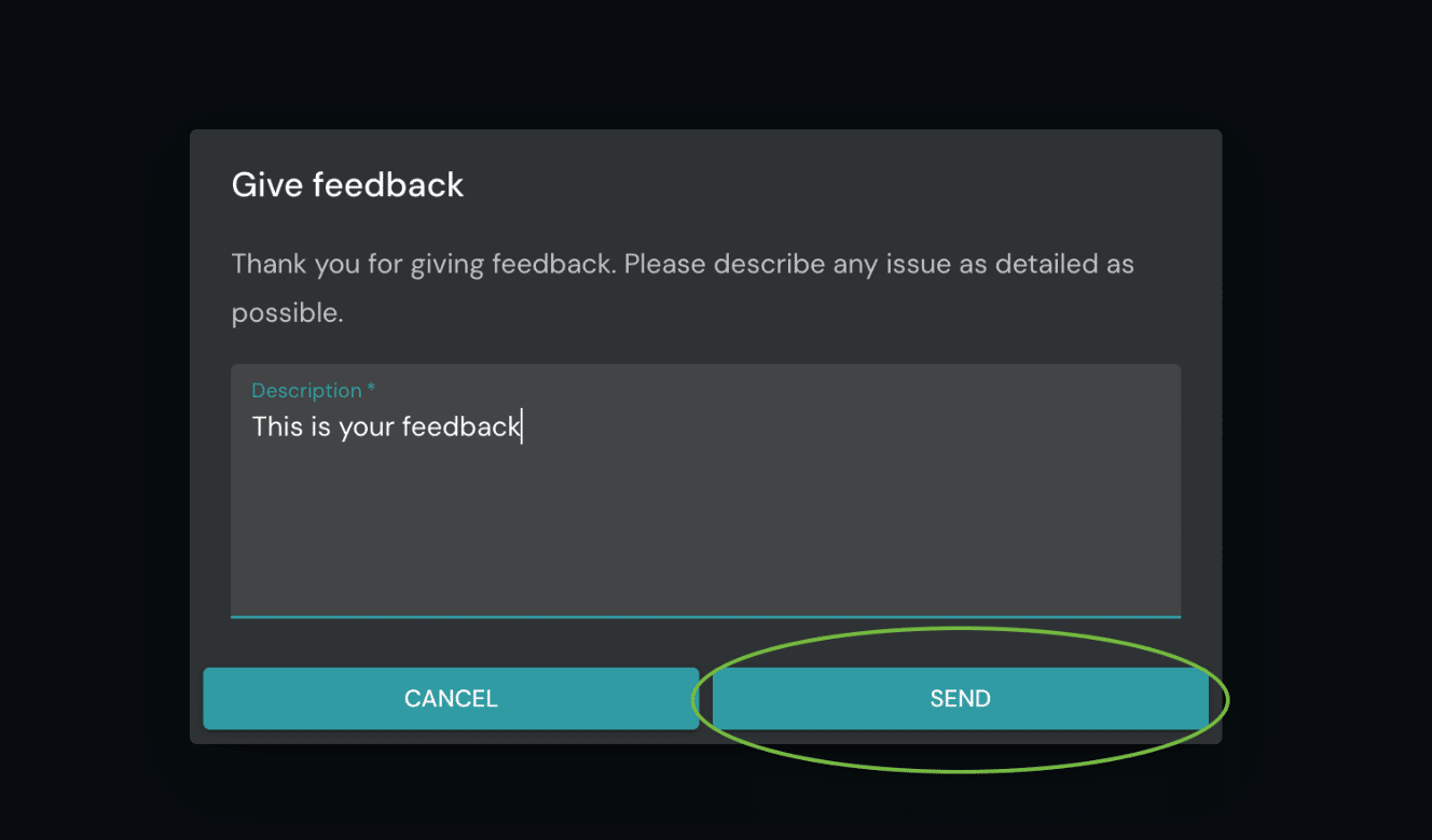 4 – Fill out Form: Fill out the feedback form that pops up with your feedback description and hit “Send”. It’s as simple as that!